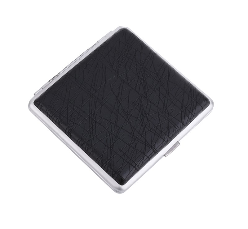 Портсигар S.Quire, сталь+искусственная кожа с металлическими клипами, черный цвет, 96*93*19 мм