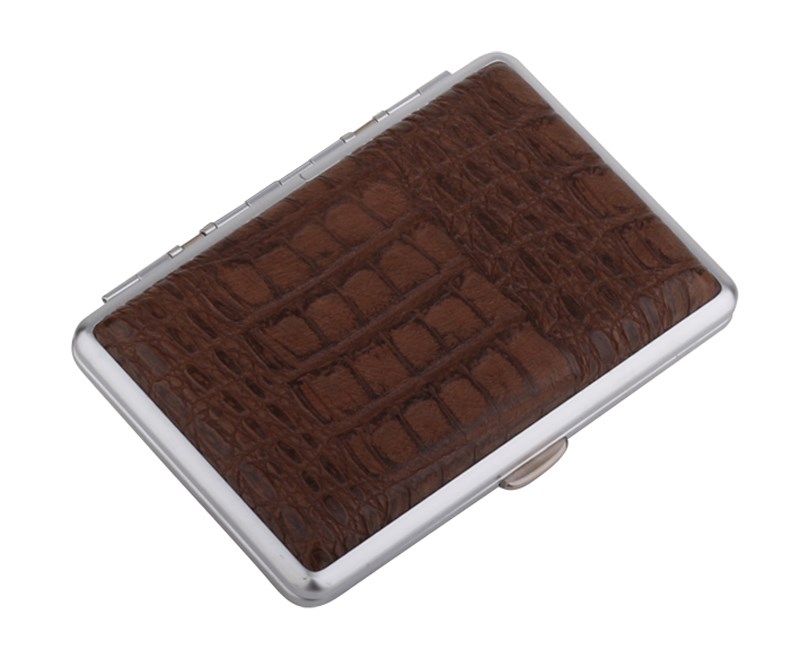 Портсигар S.Quire, сталь+искусственная кожа с металлическими клипами, коричневый цвет, 74*95*18 мм