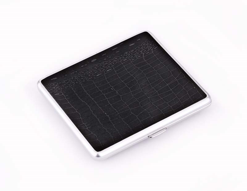 Портсигар S.Quire, сталь+натуральная кожа, чёрный со вставками, 98х90х18,5 мм