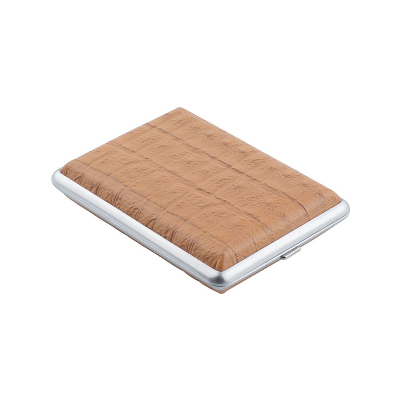 Портсигар S.Quire, сталь+натуральная кожа, коричневый цвет с рисунком, 74*95*18 мм