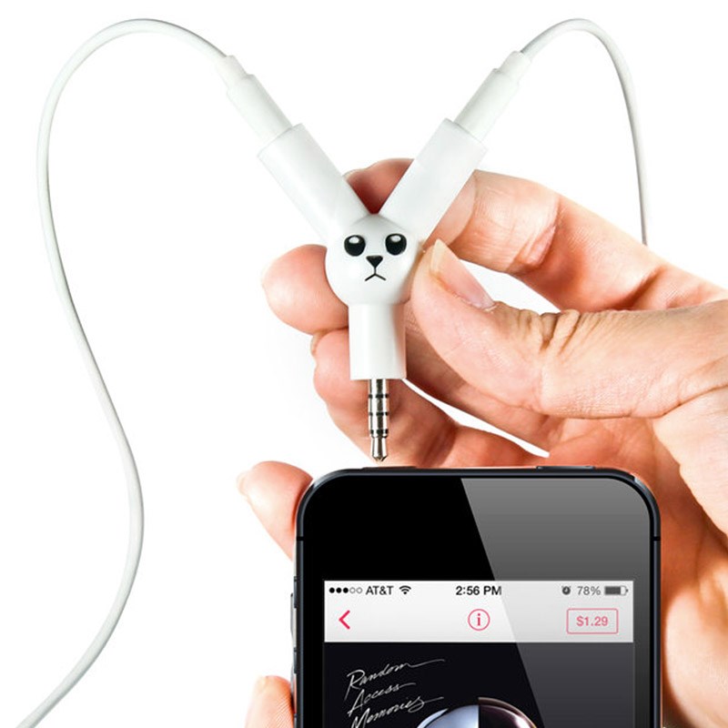 "Ты должен послушать эту песню!" - говорите вы и отдаете другу наушники, довольствуясь лишь его реакцией. Почему бы не наслаждаться музыкой вместе? С гениальным разветвителем для наушников вы можете слушать одну песню в одно время на одном устройстве. Разъем 3,5 мм универсален для смартфонов, планшетов и компьютеров, так что теперь вы можете разделить с любимыми и друзьями фильмы и любимые треки. Просто воткните кролика в устройство, а ваши наушники - в его боковые разъемы.