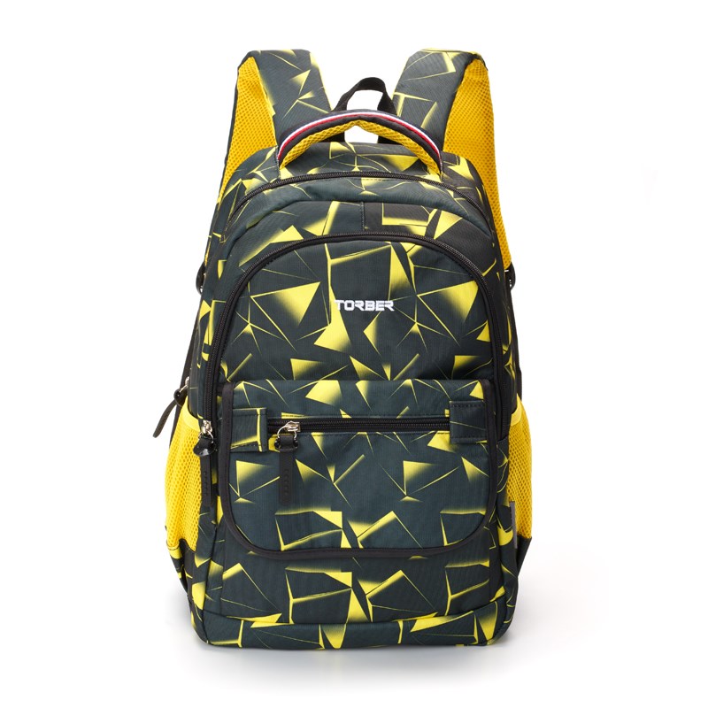 Рюкзак TORBER CLASS X, черно-желтый с орнаментом, полиэстер, 45 x 30 x 18 см