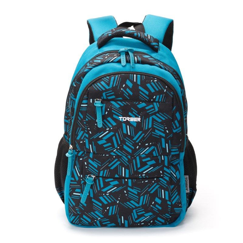 Рюкзак TORBER CLASS X, голубой с орнаментом, полиэстер, 45 x 30 x 18 см