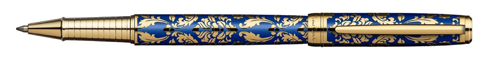 Ручка - роллер Pierre Cardin RENAISSANCE. Корпус - латунь. Детали дизайна - латуль и позолота. Отделка - гравировка методом травления. Съемный колпачок. Цвет - синий и золотистый. Упаковка В-2.