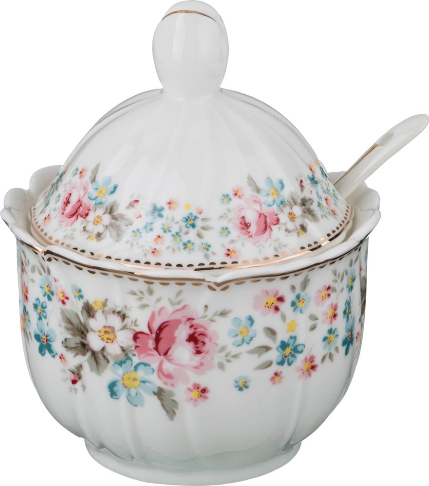 Сахарница с ложкой "Мадемуазель кики" 10*10*12 см 250 мл
