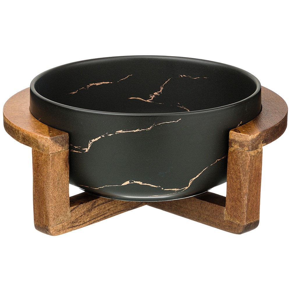 Салатник на деревянной подставке коллекция "Золотой мрамор" цвет: black 23*19,*10 см