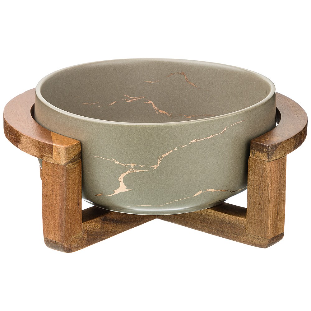 Салатник на деревянной подставке коллекция "Золотой мрамор" цвет: gray 23*19,*10 см