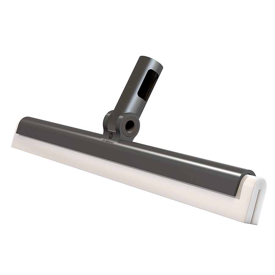 Швабра-скребок для пола состоит из прочного пластикового корпуса, в основе которого зафиксирован сгон для воды. Он представлен в виде двойной полоски, выполненной из плотного износостойкого материала. Конструкция держателя позволяет работать в двух направлениях: на себя и от себя. Швабра отлично удаляет воду и моющие средства даже в стыках напольных покрытий. Она идеально подходит для уборки в ванной комнате, на кухне, на террасе или у бассейна. Телескопическая ручка приобретается отдельно. Скребок легко крепится к ней с помощью защелкивающегося механизма.
