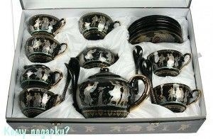 Сервизчайный «Греческий» привлекает своим безупречным дизайном, а также великолепнымкачеством исполнения. Оригинальный чайный сервис «Греческий» исполнен изтончайшего фарфора в элегантных темных тонах, все его предметы уложены наатласной белой обивке внутри красивой подарочной упаковки.