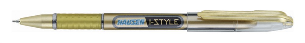 Шариковая ручка Hauser I-Style, корпус - пластик+фольга, цвет корпуса: серебристый/золотистый, прорезиненная зона захвата под цвет корпуса, элементы дизайна - пластик под цвет корпуса, цвет чернил - синий, толщина стержня - 0,7мм, 12шт/уп