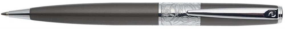 Шариковая ручка Pierre Cardin BARON. Корпус - латунь и лак. Отделка и детали дизайна - сталь, хром, гравировка кольца в стиле стимпанк. Цвет - серый. Упаковка В.