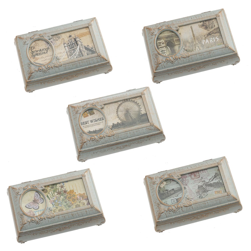Шкатулка музыкальная, изготовлена из полимерных материалов. Размер: L18 W11,5 H7,5 см, представлено в пяти вариантах, упаковка-коробка.