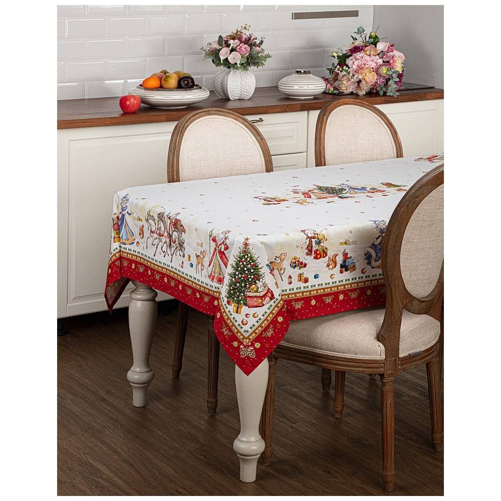 Скатерть "С новым годом" 160х220 см ,красный,100% хлопок,твил с пропиткой