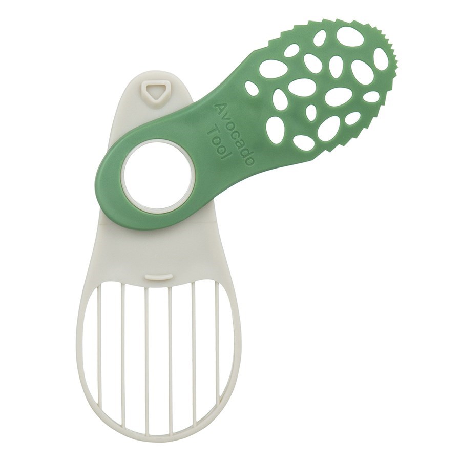 Слайсер для авокадо Vik 5 в 1 поможет одним движением руки удалить косточку, разделить мякоть на ровные кусочки и при необходимости превратить ее в однородную кашицу. Специальная зазубренная кромка легко прорезает кожицу, а изогнутый наконечник быстро извлекает целые половинки плода. Изделие выполнено из полипропилена. Материал хорошо очищается от загрязнений, устойчив к износу. Благодаря складной конструкции инструмент занимает минимум места при хранении, без труда помещается в ящик кухонного стола и органайзер.