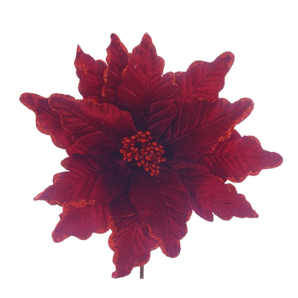 Рождественская пуансетия. Лепестки выглядят невероятно эффектно: на их кончиках мерцает россыпь блесток, сердцевина состоит из бусинок. Прикрепите этот стильный новогодний цветок на елку и она заиграет яркими красками.