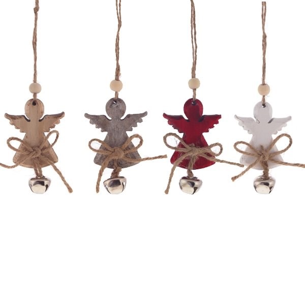 Новогоднее подвесное украшение выполнено из дерева в виде ангелочков, представлено в 4-х вариантах, упаковано в пакет