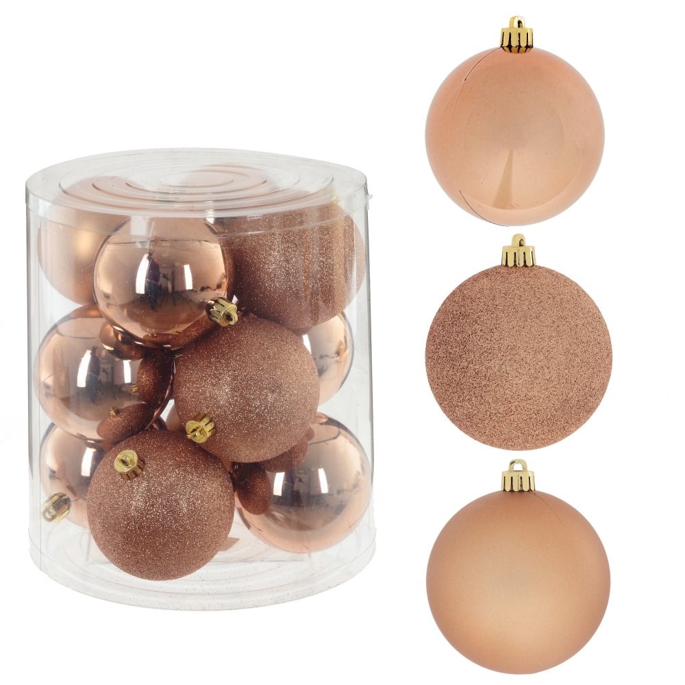 Набор из 12-ти елочных шаров, диаметром 9 см, выполнен в единой цветовой гамме. В составе набора - пластиковые шары разной фактуры - глянцевые, матовые, с глиттером. Прекрасно смотрятся в убранстве новогодней ели. Поставлются в прозрачном пластиковом контейнере.