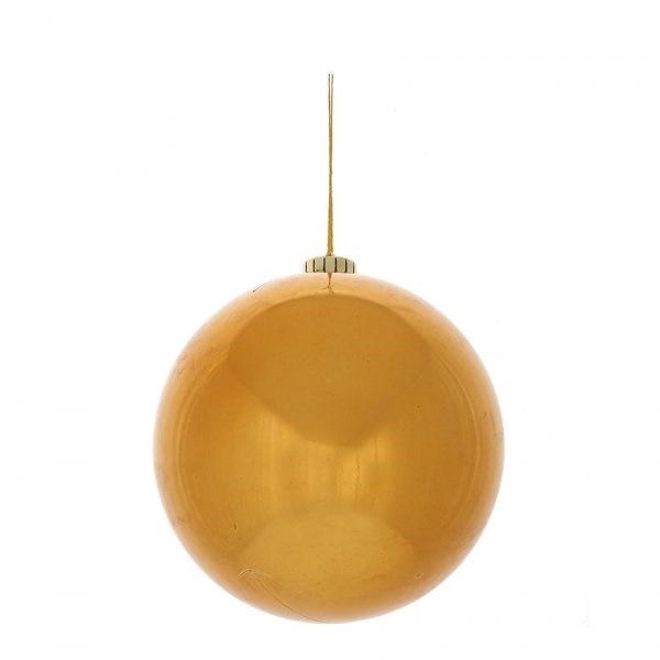 Новогодний простой золотой елочный шар, изготовлен из полимерных материалов, в подарочной коробке