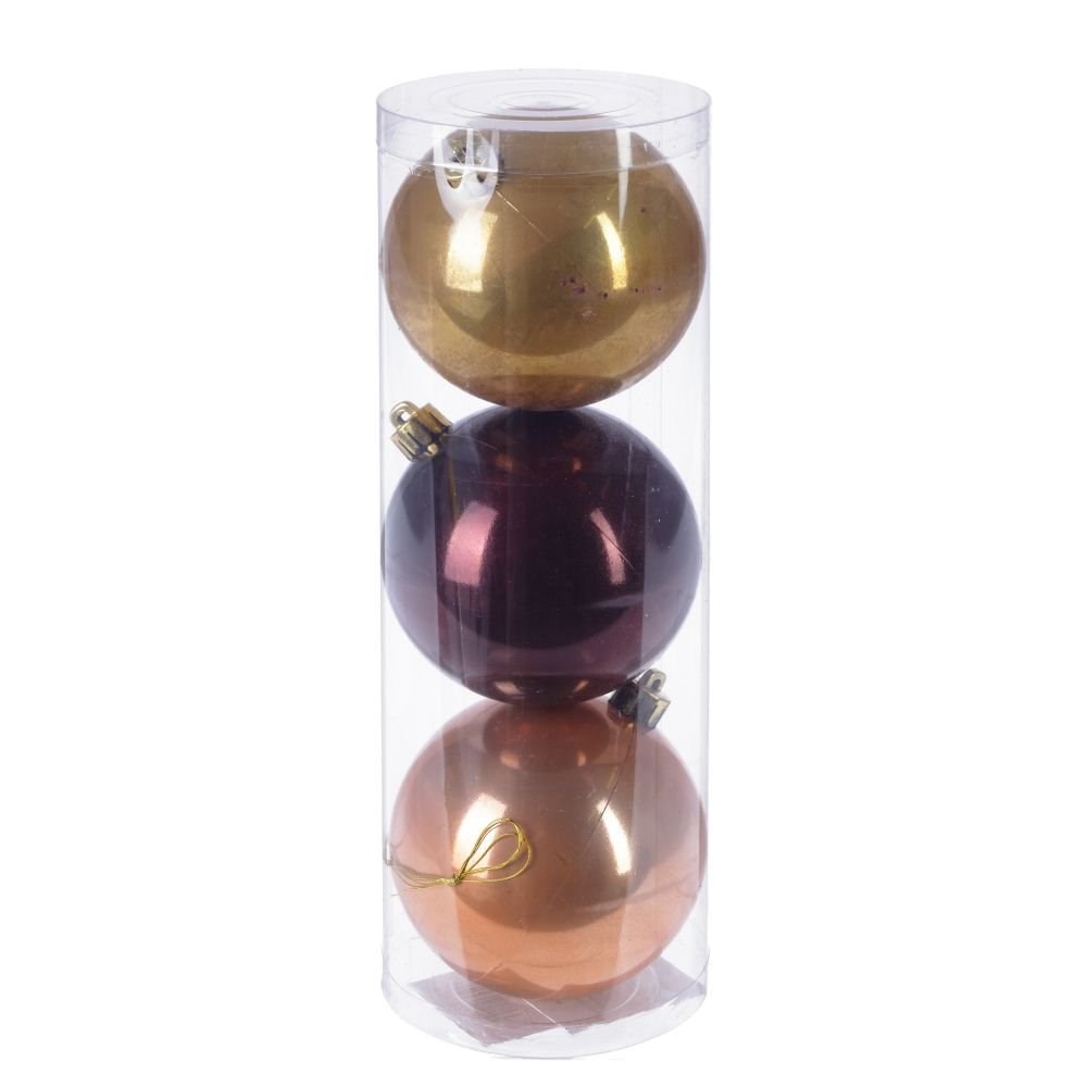 Набор из 3-х новогодних украшений (глянцевые елочные шары трех цветов), изготовлен из полимерных материалов, в подарочной упаковке