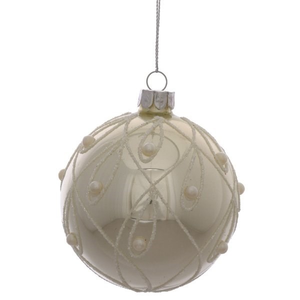 Новогодний белоснежный елочный шар с жемчугом, изготовлен из стекла