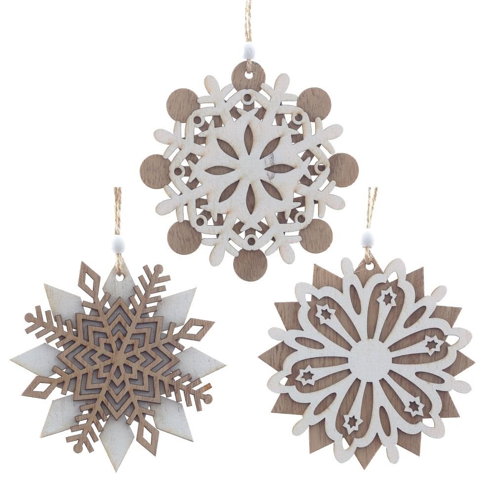 Украшение новогоднее "Снежинка", изготовлено из дерева. Размер: L10 W0,5 H10 см. Представлено в трех вариантах.