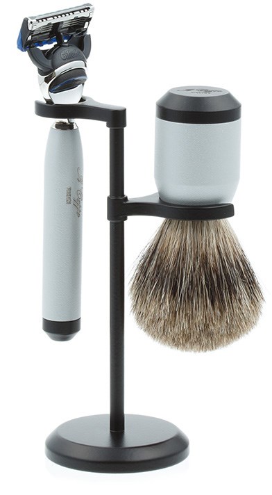 Бритвенный набор IL Ceppo: станок, помазок, подставка, серебристо-черный матовый цвет