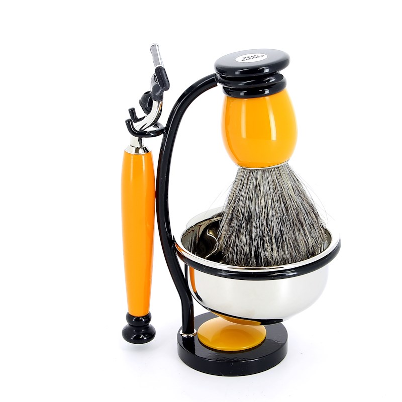 Бритвенный набор S.Quire: станок, помазок, чаша и подставка; жёлтый