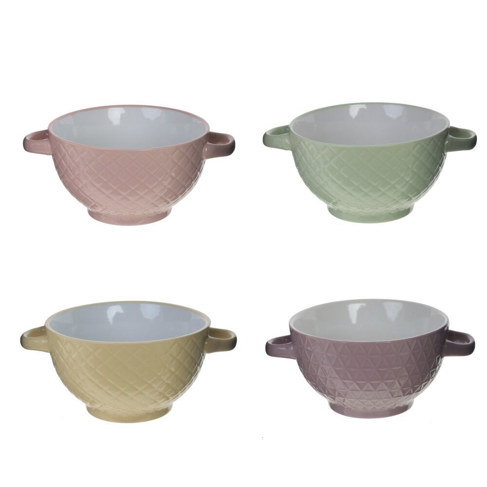 Бульонница – глубокая посуда для порционной подачи бульона, супа, других первых блюд, дополнена двумя ручками. Стильный и ненавязчивый дизайн отлично подойдет к большинству современных интерьеров. Объем: 650 мл. Представлена в четырех вариантах
