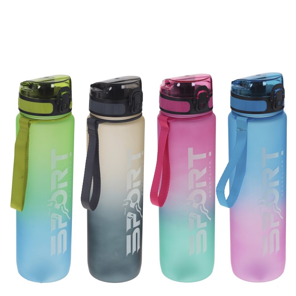 Бутылка для воды изготовлена из полимерных материалов. Оснащена завинчивающейся крышкой с откидным клапаном и ремешком для переноски. На корпус нанесена шкала объема, что поможет точно рассчитать необходимое количество напитка. Удобна для пеших прогулок, походов и повседневного использования. Объем: 1000 мл. Представлена в четырех вариантах.
