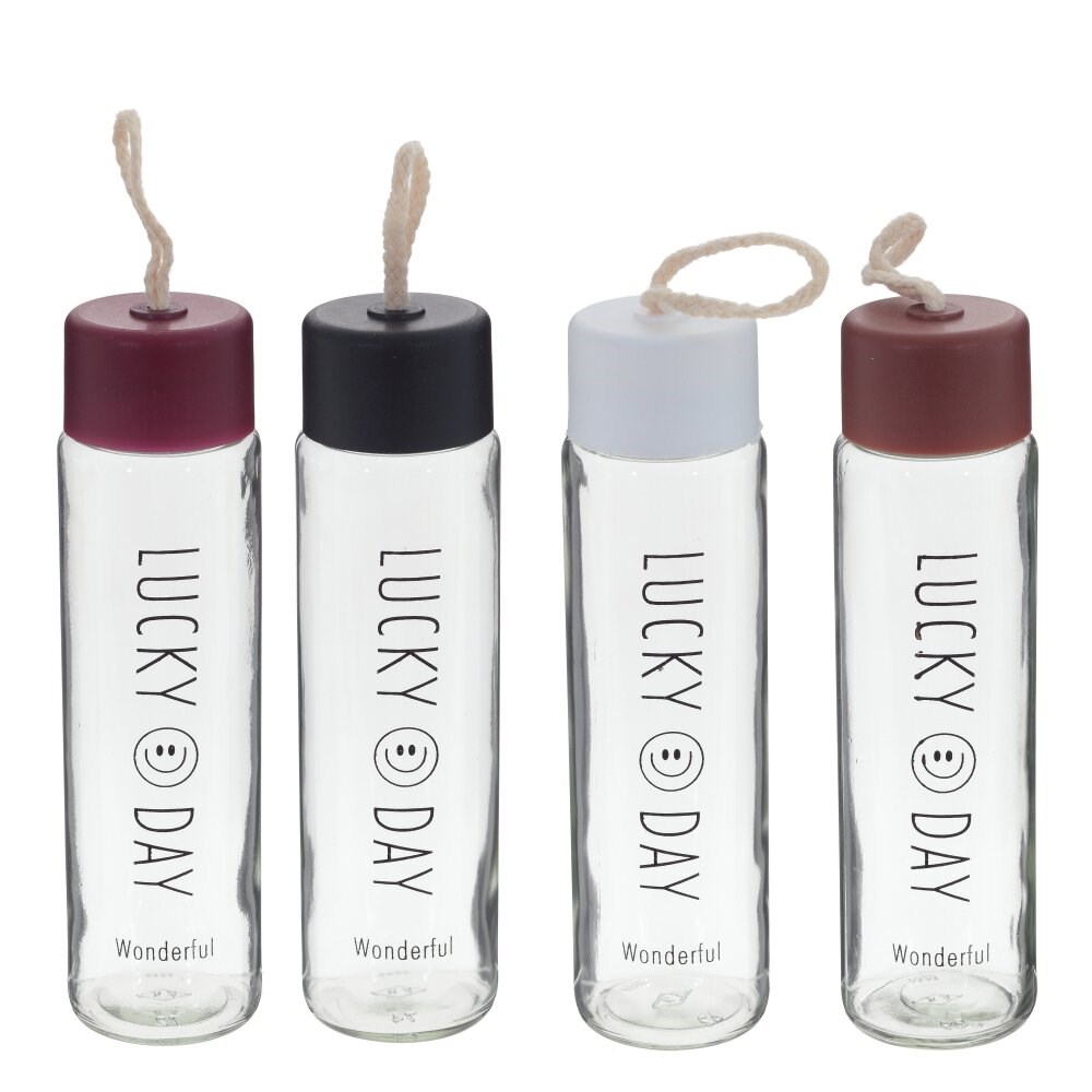 Бутылка для воды, объемом 400 мл, изготовлена из стекла. Оснащена завинчивающейся крышкой с ремешком для переноски. Удобная и полезная вещь, отличный аксессуар для активного отдыха и прогулок. Представлена в четырех вариантах.