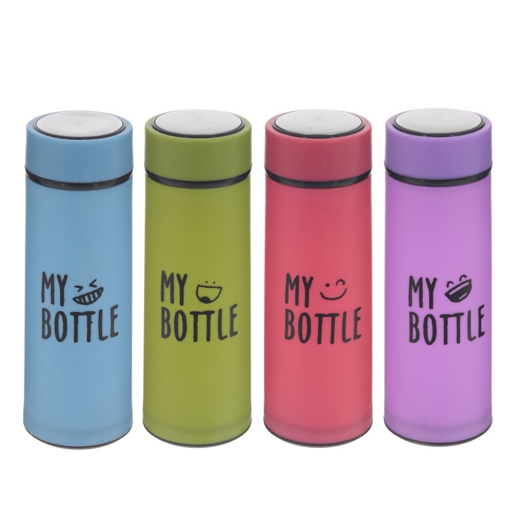 Бутылка для воды, объемом 450 мл, изготовлена из стекла. Оснащена завинчивающейся крышкой. Яркая, удобная и полезная вещь, отличный аксессуар для активного отдыха и прогулок. Представлена в четырех вариантах.