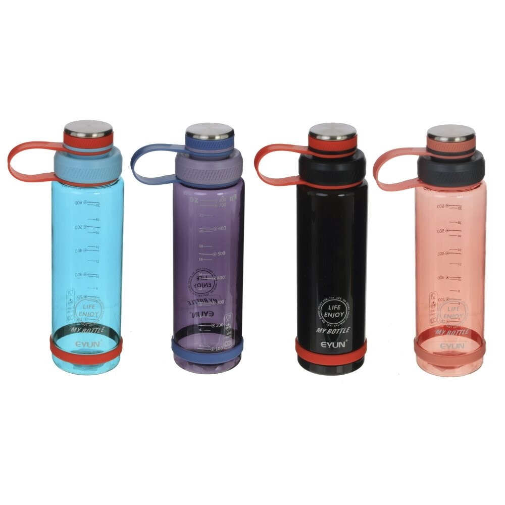 Пластиковая бутылка объемом 800 мл. достаточно удобная и полезная вещь, отличный аксессуар для спорта, активного отдыха и прогулок. Оснащена завинчивающейся крышкой и ремешком для удобного перемещения. Представлена в 4 вариантах