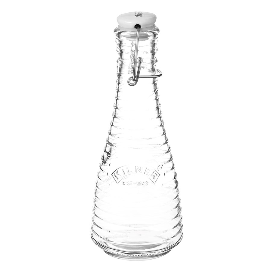 Бутылка для воды выполнена из стекла и украшена логотипом бренда Kilner. Оригинальная форма делают ее стильным аксессуаром для кухни или гостиной. Она оснащена пробкой, которая плотно прилегает к краям горлышка и не пропускает воздух, чтобы вода в бутылки оставалась свежей. Объём 0,85 л.