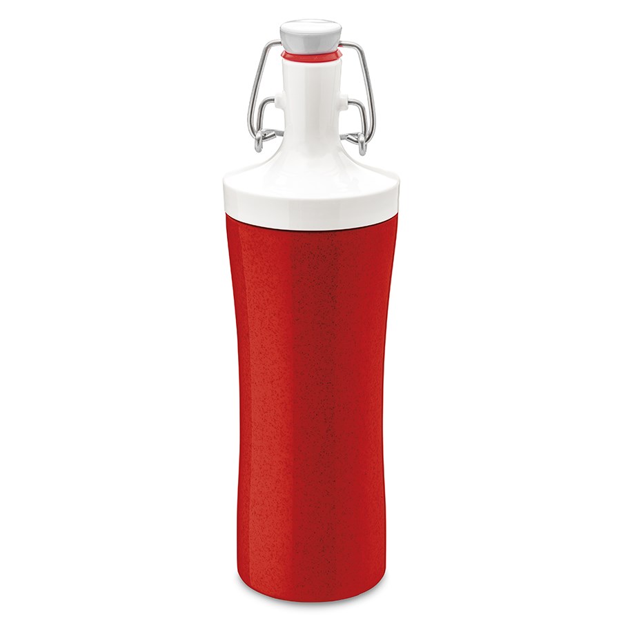 Крышка плотно прилегает к горлышку, благодаря металлическому механизму. За счет отсутствия уплотнительного кольца бутылка гигиенична и легко поддается уходу. Объем: 425 мл.