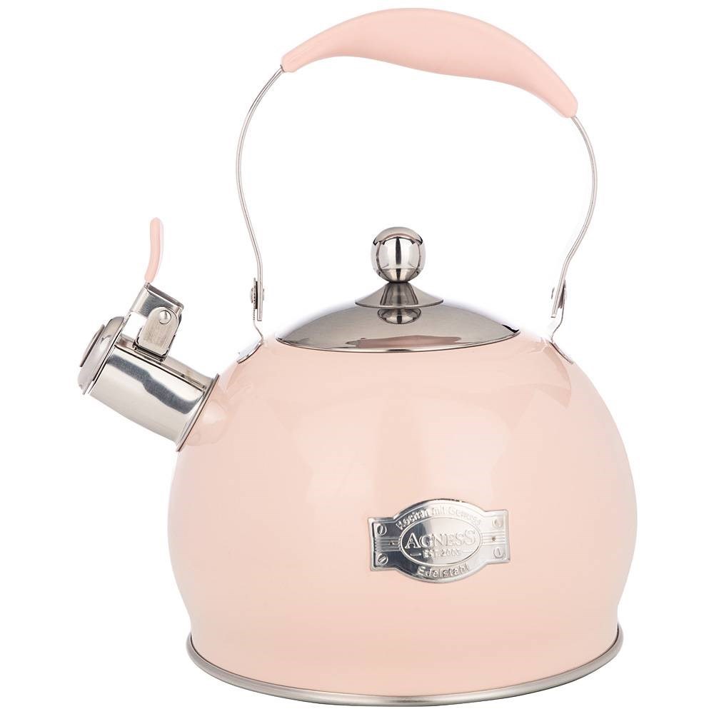 Чайник agness со свистком, 3л c индукцион. капсульным дном и складывающейся ручкой цвет: пудровый