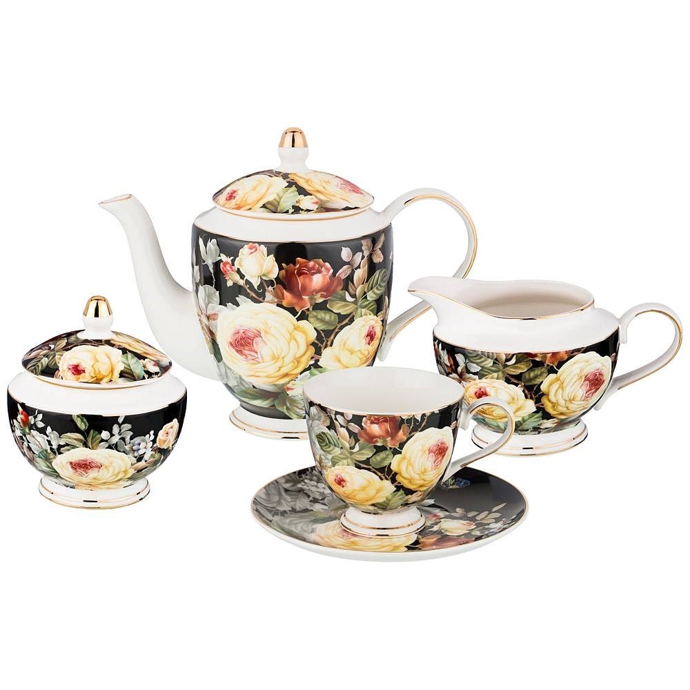Комплектность: чайник 1125 мл, сахарница 330 мл, молочник 340 мл, 6 чашек 200 мл, 6 блюдец