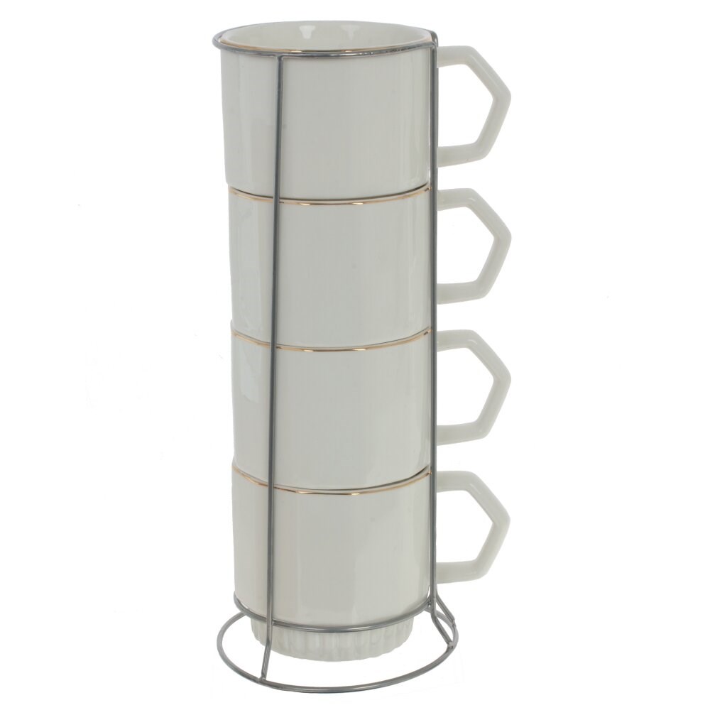 Набор из четырех чашек объемом 300 мл станут оригинальным дополнением любого интерьера. Благодаря металлической подставке посуда не займёт много места и будет в любой момент готова к использованию.