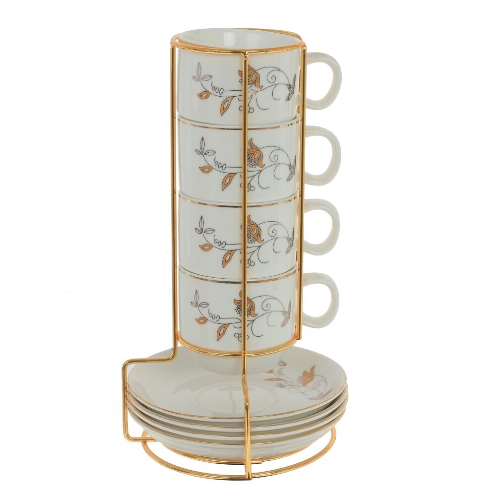 Набор из четырех чашек объемом 150 мл и блюдец станут оригинальным дополнением любого интерьера. Благодаря металлической подставке посуда не займёт много места и будет в любой момент готова к использованию.