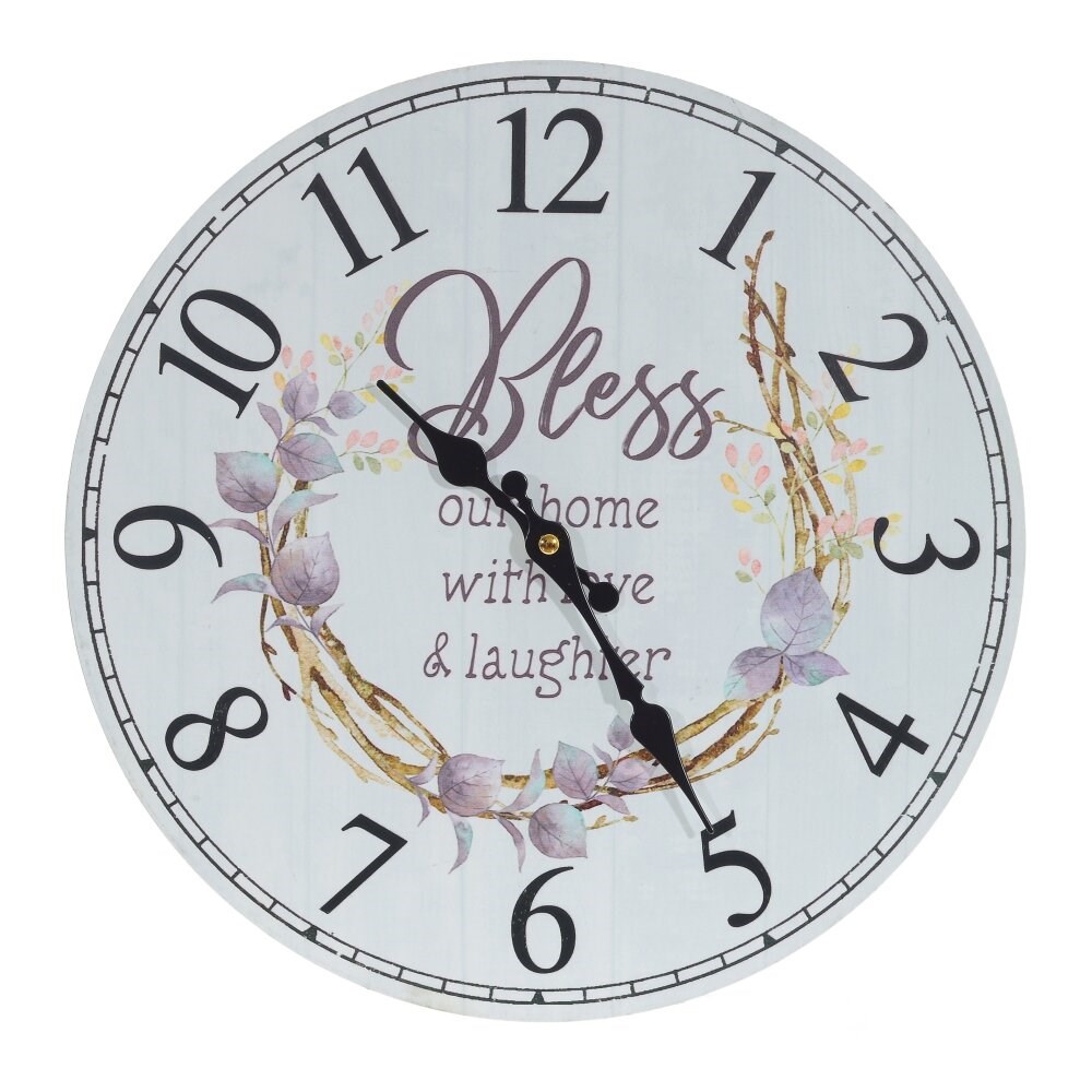 Часы настенные декоративные. Две стрелки - часовая, минутная. Механизм кварцевый. Диаметр циферблата: 33 см, цифры - арабские. Работают от одной батарейки типа "АА" ( в комплект не входит). С задней стороны есть крепление на стену.
