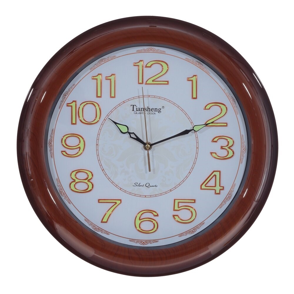 Круглые настенные часы, диаметром 32 см, имеют три стрелки - часовая, минутная, секундная, кварцевый механизм. Цифры - арабские. Работают от 1 батарейки типа "АА" ( в комплект не входит). С задней стороны есть отверстие для крепления на стену.