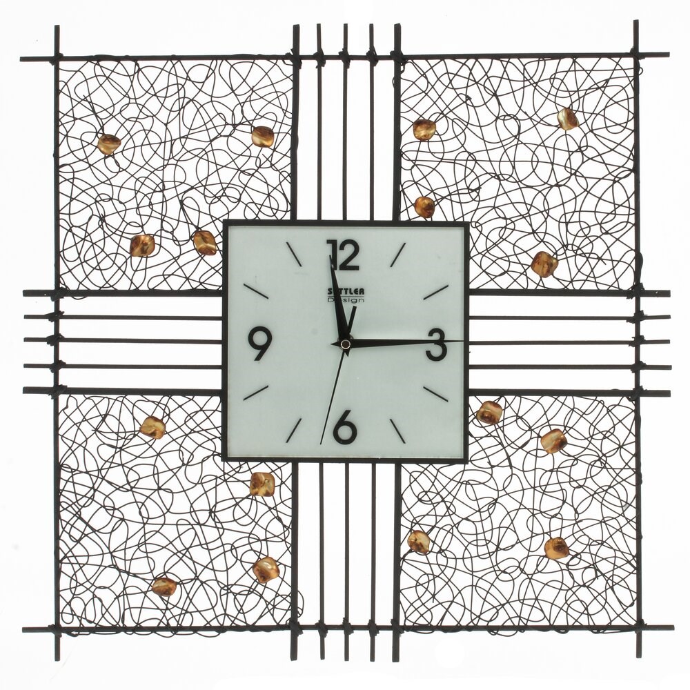 Оригинальные настенные часы в современном стиле. Квадратный циферблат, размером 18 на 18 см, в металлическом обрамлении, украшенным искусственными камушками, имеет три стрелки - часовую, минутную, секундную. Цифры - арабские. Работают от 1 батарейки типа "АА" ( в комплект не входит). С задней стороны есть крепление на стену.