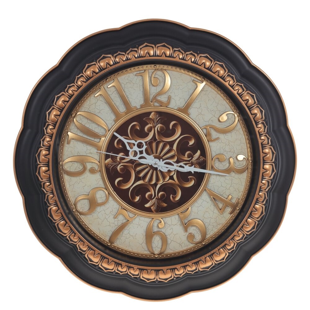 Часы настенные декоративные отлично выглядят в интерьере и дополняют его. Циферблат круглый 34 см, с арабскими цифрами. Стрелки: часовая, минутная, секундная. Механизм: кварцевый. Питание: одна батарейка АА (не прилагается).