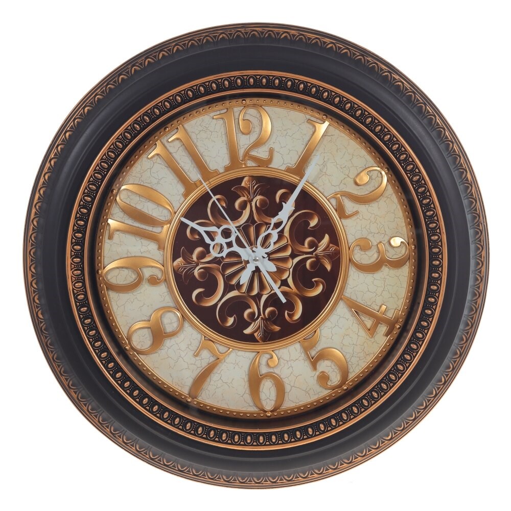 Часы настенные декоративные отлично выглядят в интерьере и дополняют его. Циферблат круглый 34 см, с арабскими цифрами. Стрелки: часовая, минутная, секундная. Механизм: кварцевый. Питание: одна батарейка АА (не прилагается).