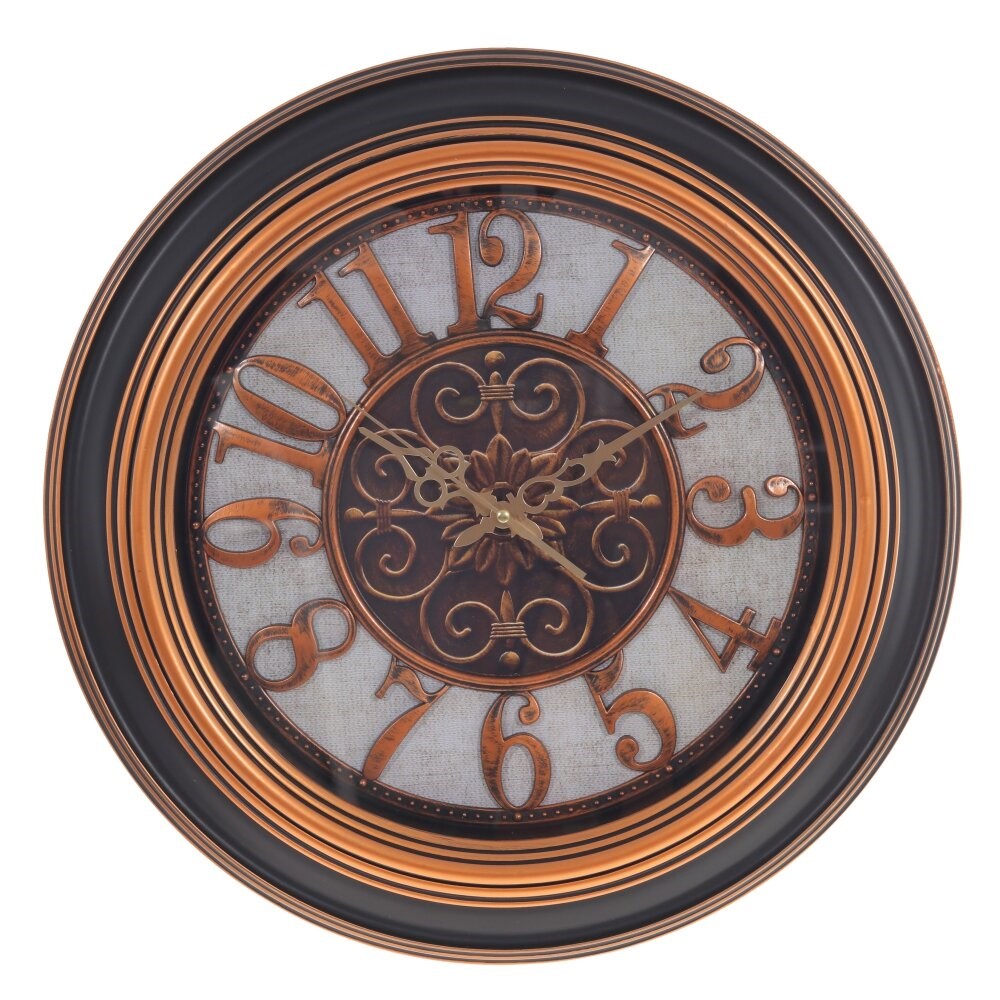 Часы настенные декоративные отлично выглядят в интерьере и дополняют его. Циферблат круглый 34 см, с арабскими цифрами. Стрелки: часовая, минутная, секундная. Механизм: кварцевый. Питание: одна батарейка АА (не прилагается).