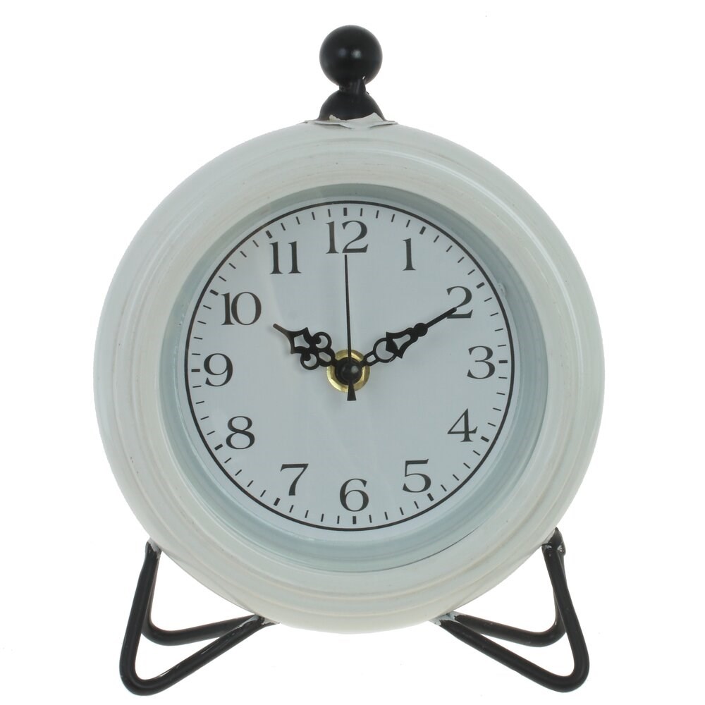 Часы настольные в стильном округлом дизайне прекрасно дополнят ваш интерьер. Циферблат диаметром 12 см, имеет три стрелки - часовая, минутная, секундная, кварцевый механизм. Цифры - арабские. Работают от 1 батарейки типа "АА" ( в комплект не входит).