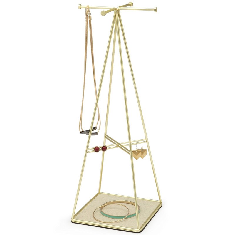 Всё идеально опродумано: на верхнюю часть вешаются цепочки, бусы или тонкие браслеты. Две перекрёстные планки в середине отлично подойдут для серёжек, а основание предназначено для мелких предметов и массивных украшений.