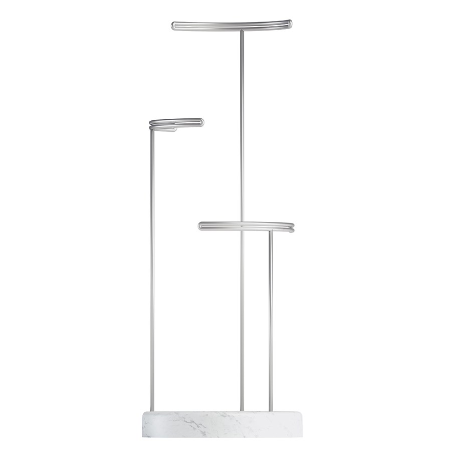 Стильный и практичный держатель для аксессуаров и украшений. На трех стойках удобно хранить часы, браслеты, бусы, цепочки, а на основании с ? кольца или запонки. На держателе есть специальные отверстия для хранения серег. Держатель отлично гармонирует со шкатулкой Tesora. Этот дуэт позволит удобно и компактно хранить все украшения.
