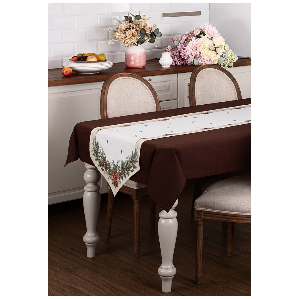 Дорожка на стол "Celebration", 45х188 см , бежевый, 100% хлопок,твил,горох