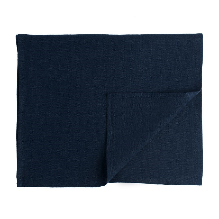 Дорожка на стол из умягченного льна темно-синего цвета essential, 45х150 см