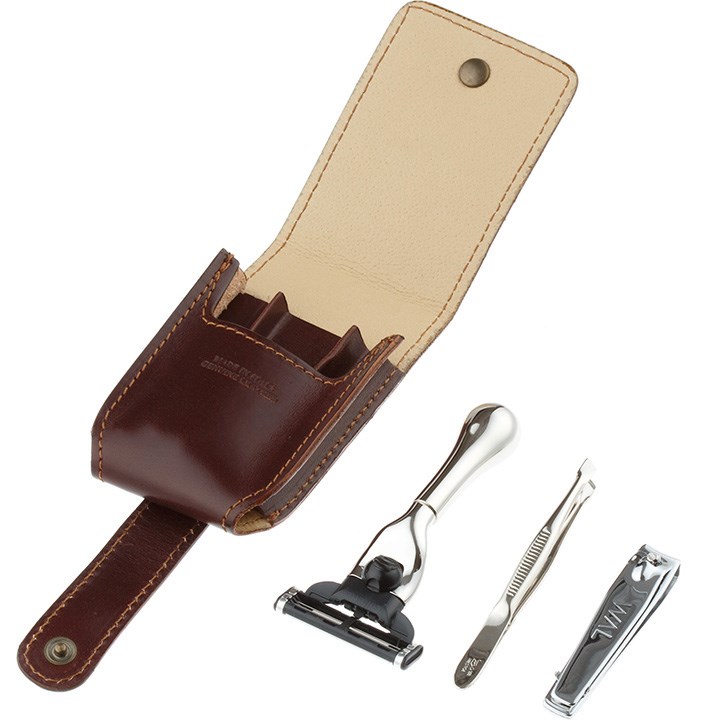 Дорожный бритвенный набор IL Ceppo в коричневом чехле: станок, пинцет, книпсер